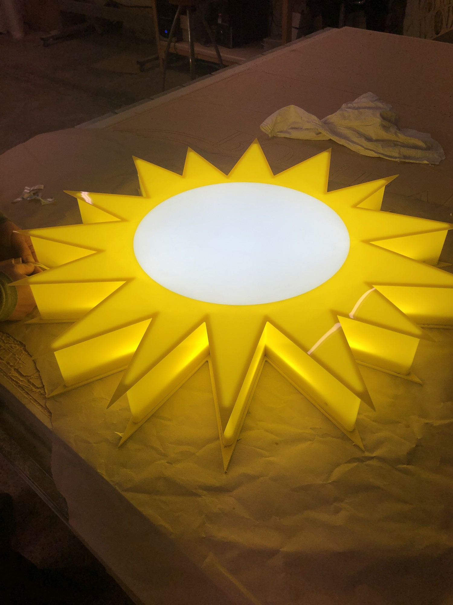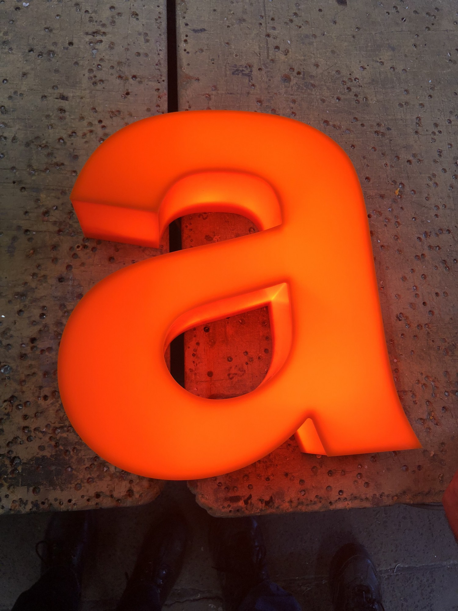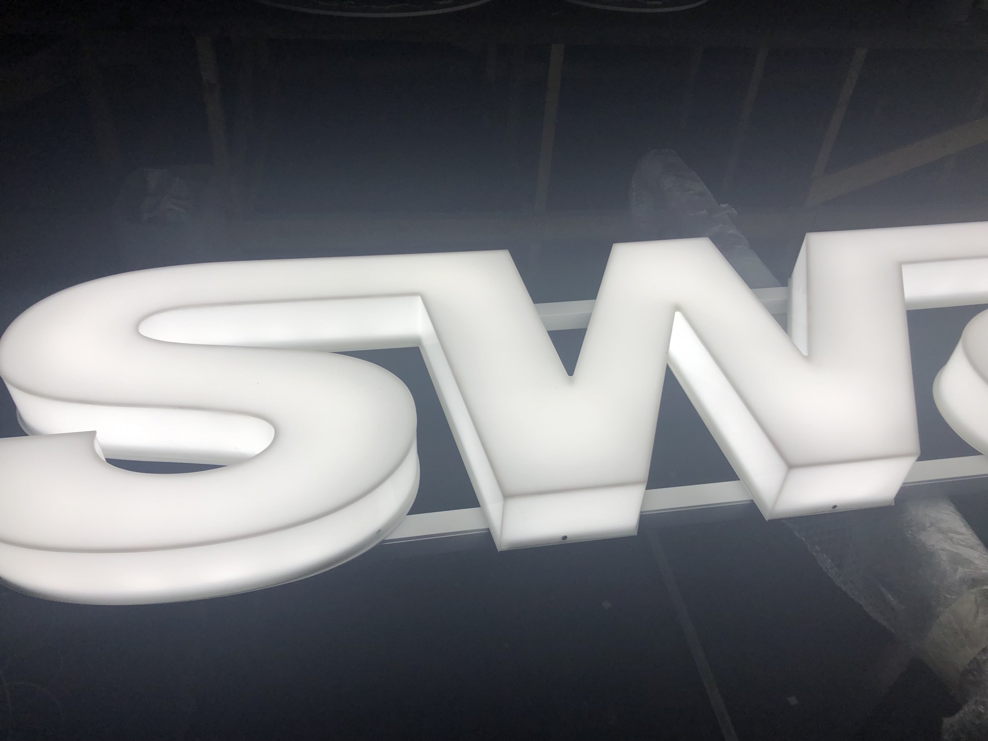Built up Illuminated Acrylic with painted metal oversized Backtray