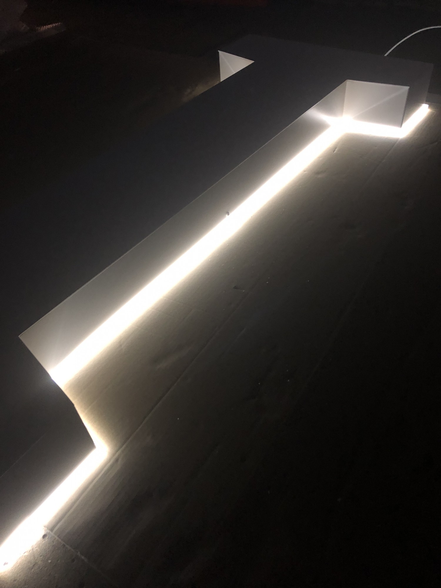 Built up metal letter with oversized acrylic backtray, Halo illuminated